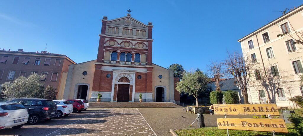 Il nome richiama un’edicola medievale dedicata alla Madonna nel luogo di una fonte sotterranea considerata miracolosa. Fu il governatore francese di Milano Carlo d’Amboise che nei primi del ‘500 – grato per una guarigione – promosse l’edificazione di un santuario. Sembrerebbe (la questione è dibattuta) che proprio Leonardo da Vinci fu incaricato del progetto originario del Santuario. L’edificio divenne una delle strutture sanitarie più importanti della città, insieme al Lazzaretto alla Ca’ Granda, di cui riprende lo schema planimetrico. L’architettura è sobria ed elegante, nei cortili porticati si trovano pregevoli affreschi cinquecenteschi e seicenteschi, mentre la sala della fonte miracolosa, riallestita con bocchette d’acqua zampillante, presenta singolari affreschi cinquecenteschi attribuiti alla bottega di Bernardino Luini, il pittore leonardesco al quale si devono – tra gli altri i meravigliosi affreschi della chiesa di San Maurizio al Monastero Maggiore, oltre agli interventi nel Duomo di Monza, in Santa Maria delle Grazie e all’Abbazia di Chiaravalle. Il Santuario è visitabile dalle 9 alle 12 e dalle 15 alle 17.30, accedendo dalla scala a destra della facciata in fondo al sagrato è possibile anche prenotare una visita guidata.